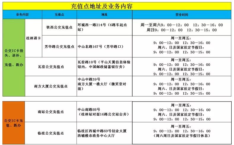 【查询】桂林公交乘车IC卡售卡充值点及上班时间