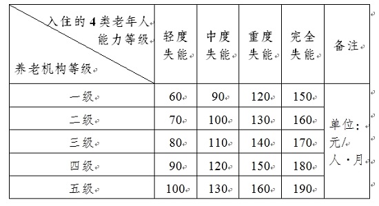 第十一条民办养老机构运营补贴根据《老年人能力评估规范》(GB/T 421952022)、《广西养老机构等级评定管理办法(试行)》(桂民规〔20202号)的评定结果和本办法第五条规定的4类人员数量,按照下列标准执行。