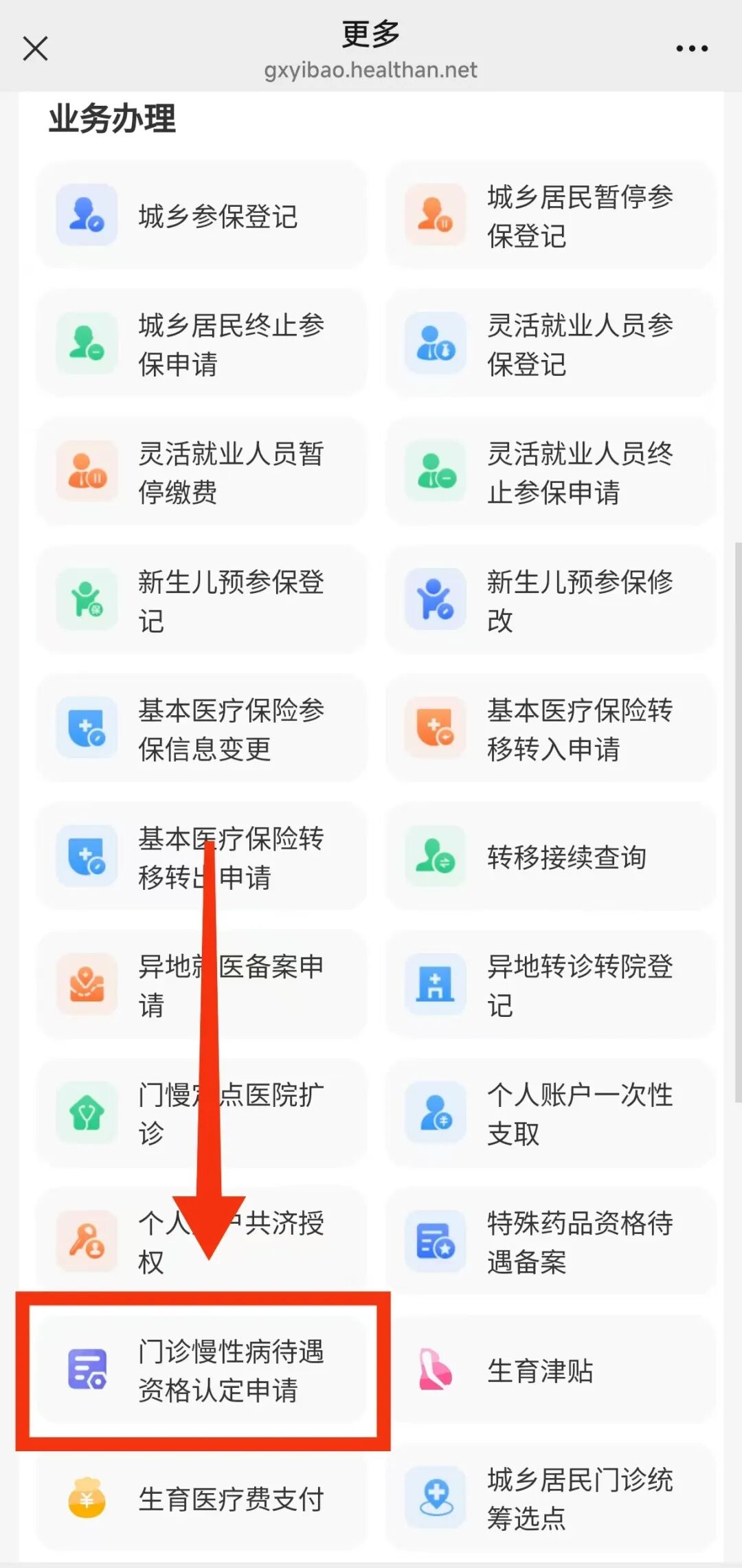 在“业务办理”板块,点击“门诊慢性病待遇资格认定申请”。