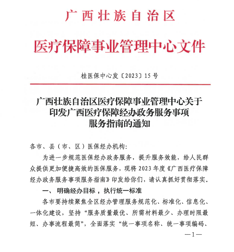 桂医保中心发〔2023〕15号 广西壮族自治区医疗保障事业管理中心关于印发广西医疗保障经办政务服务事项服务指南的通知