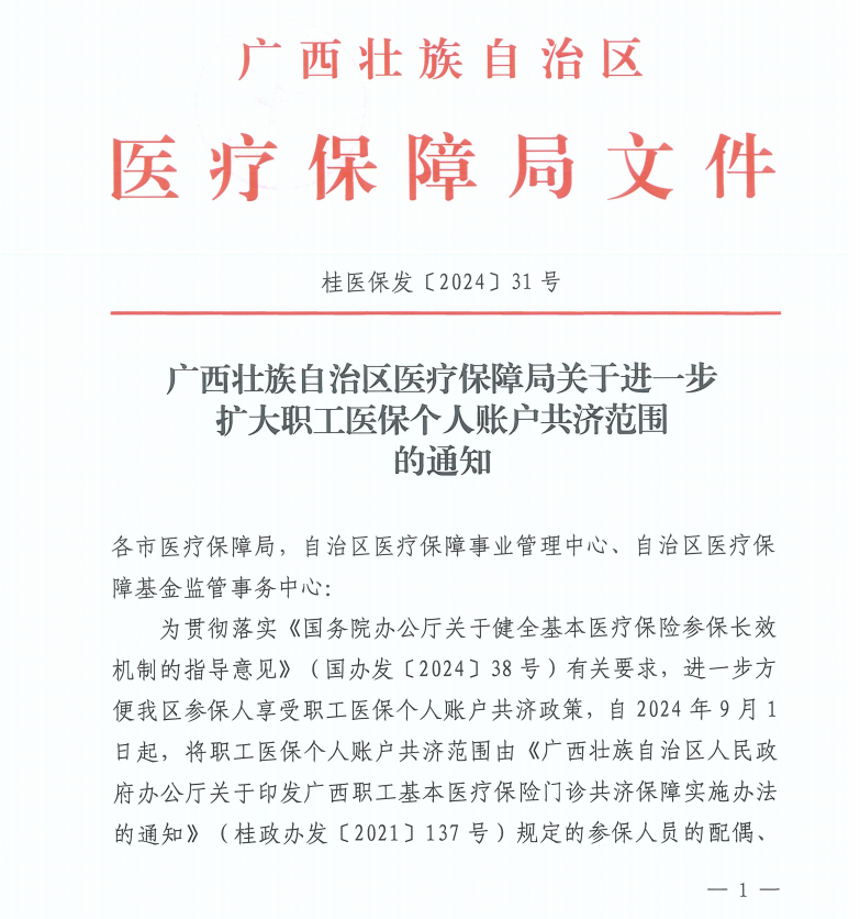 广西壮族自治区医疗保障局关于进一步扩大职工医保个人账户共济范围的通知