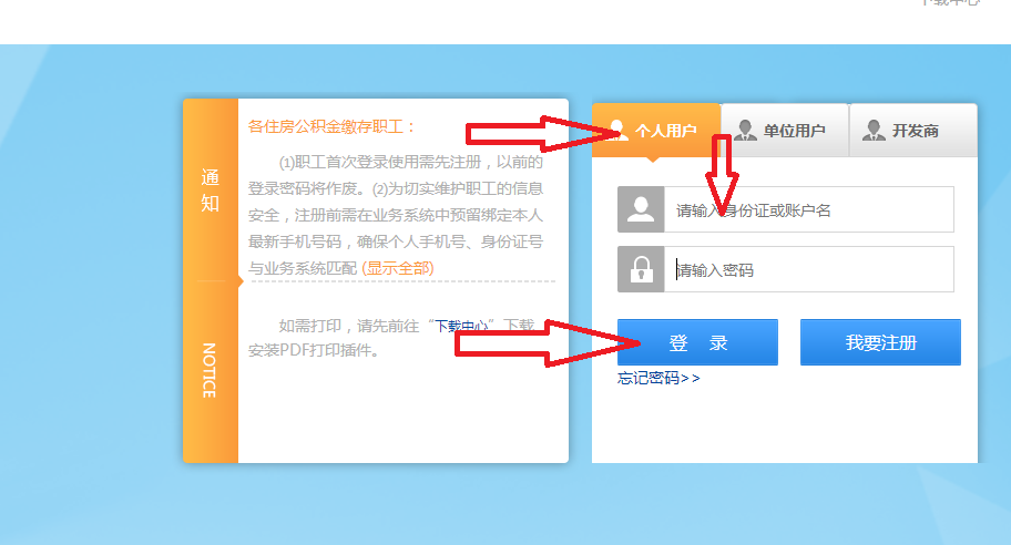 点击“网上业务大厅”,选择“个人用户”,如下图所示。如未注册的用户可先点击“我要注册”进行网上注册。