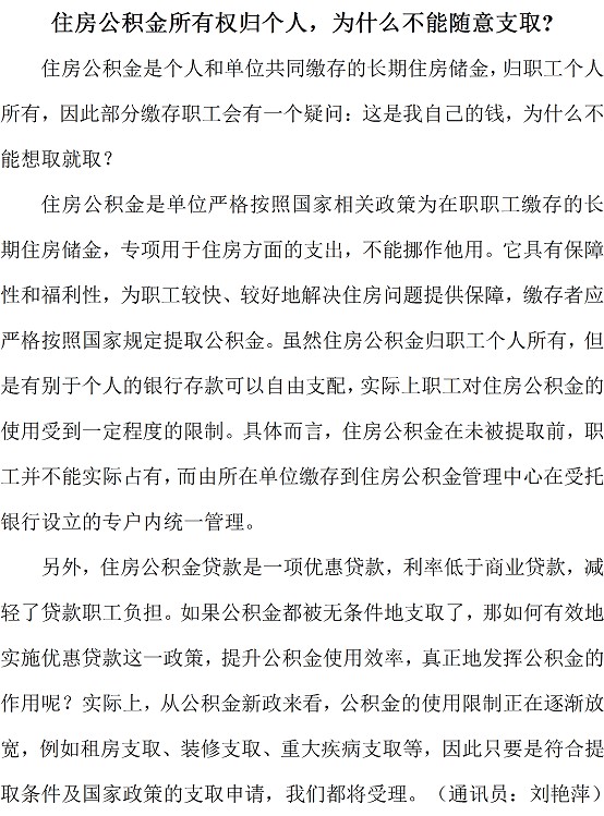 住房公积金所有权归个人,为什么不能随意支取?