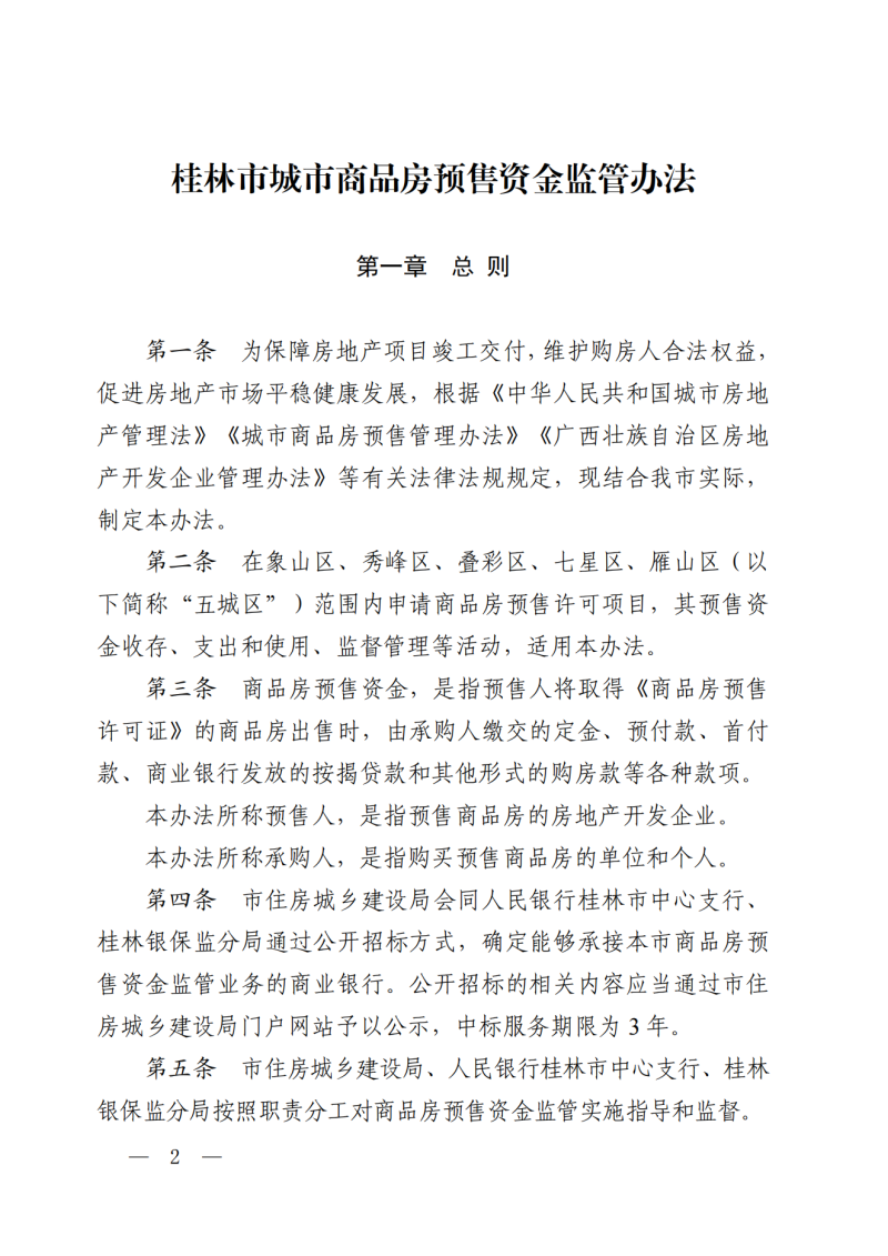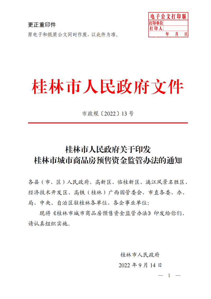 桂林市人民政府关于印发桂林市城市商品房预售资金监管办法的通知