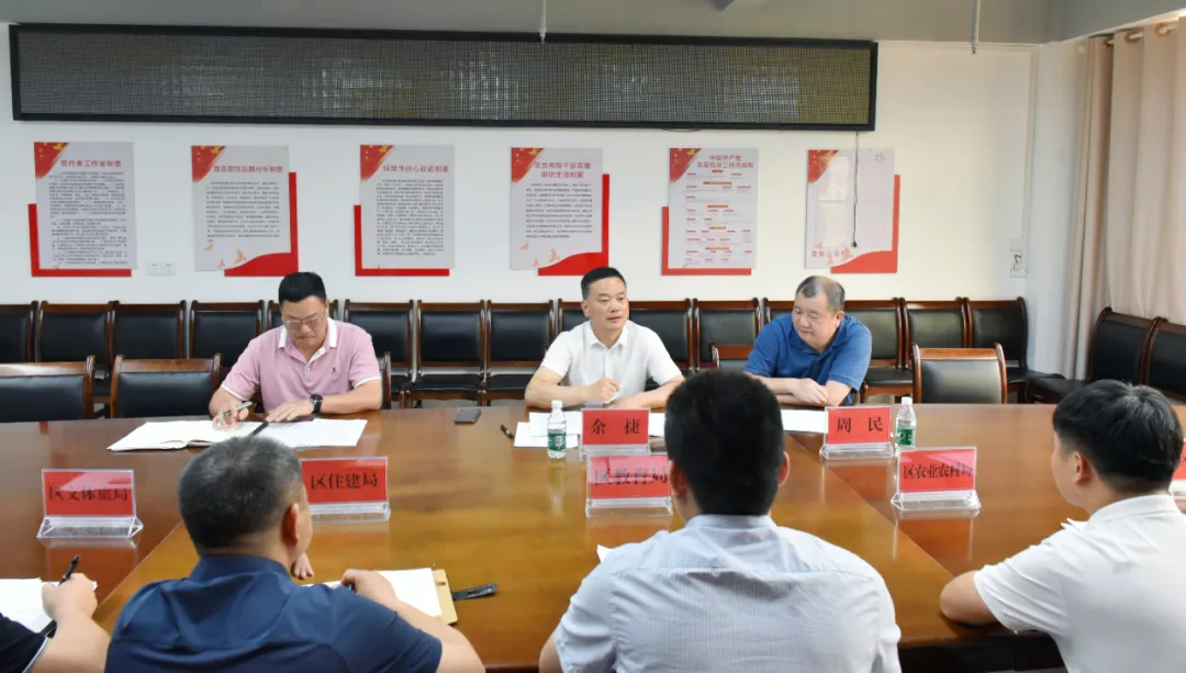 会前,余捷一行深入区政务服务中心、区农业农村局、区教育局等部门,实地调研我区政务服务及12345热线反映问题情况,推进乡村全面振兴及重点整治村集体“三资”微腐败问题情况和整治中小学“校园餐”食材配送和安全管理不规范问题落实等情况。