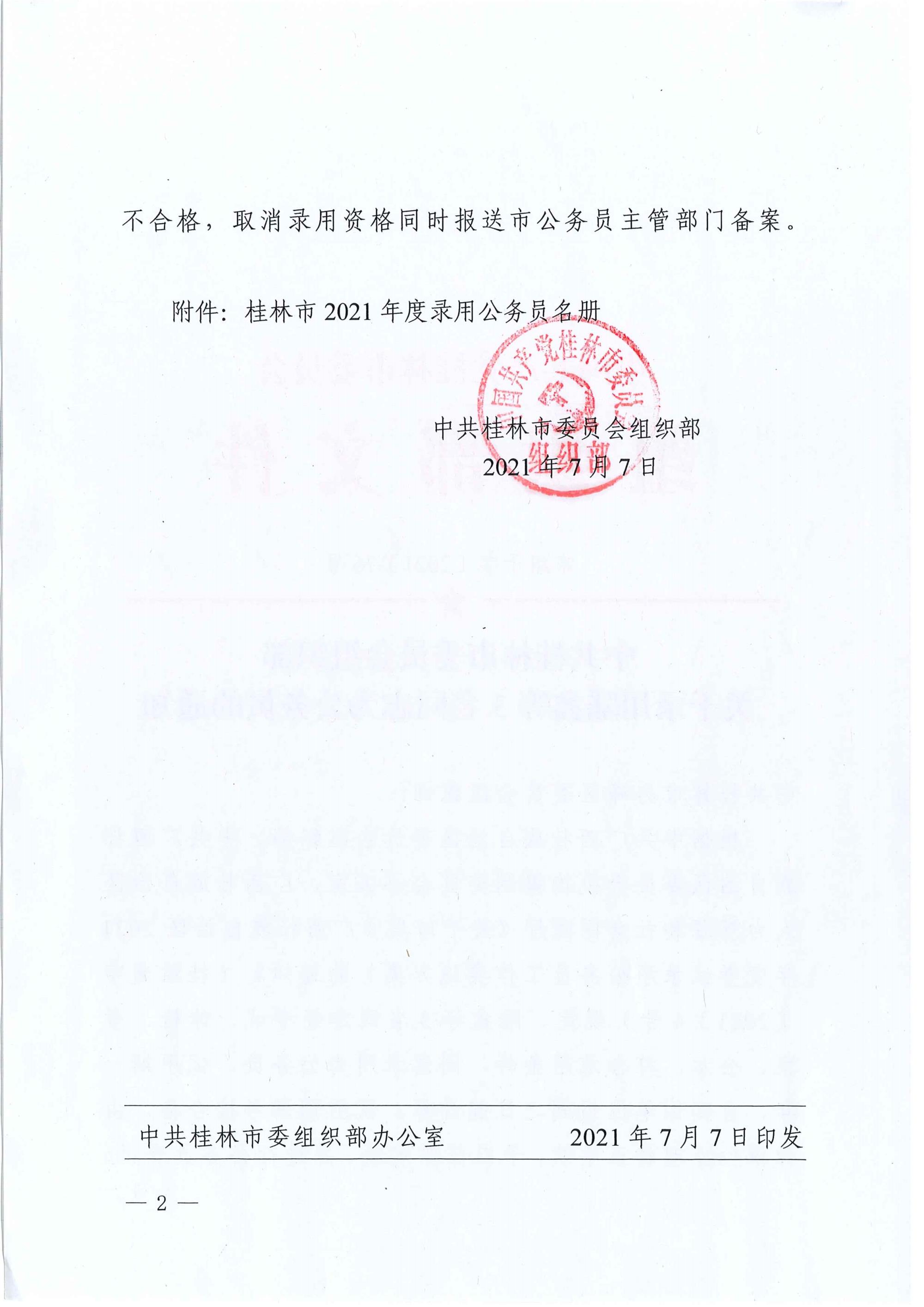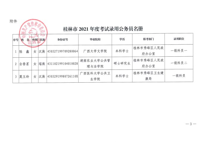 中共桂林市委员会组织部关于录用陆鑫等3名同志为公务员的通知