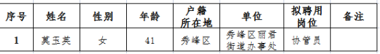 秀峰区公益性岗位工作人员招聘经过现场报名、资格审查、面试、体检等工作程序,现将拟聘用人员名单公示如下,公示期为5个工作日,公示时间为:2025年5月30日-2025年6月6日。如有异议,请于2025年6月6日前,以书面形式署真实姓名向桂林市秀峰区人力资源和社会保障局反映。