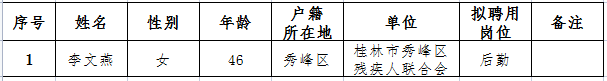 秀峰区公益性岗位工作人员招聘经过现场报名、资格审查、面试、体检等工作程序,现将拟聘用人员名单公示如下,公示期为5个工作日,公示时间为:2025年9月30日-2025年10月13日。如有异议,请于2025年10月13日前,以书面形式署真实姓名向桂林市秀峰区人力资源和社会保障局反映。