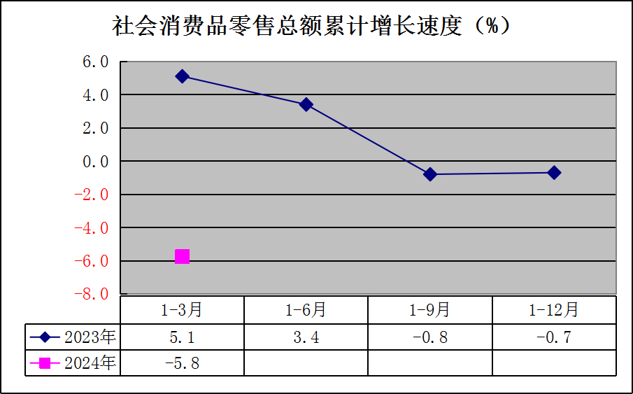 | 五、社会消费品零售总额 | 亿元 | —— | -5.8 |