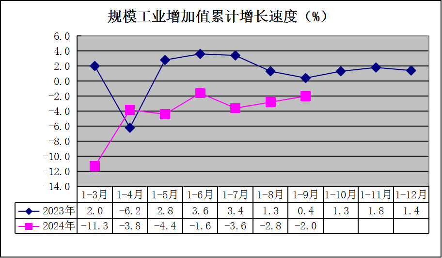 | 二、规模以上工业增加值 | 亿元 | —— | -2.0 |