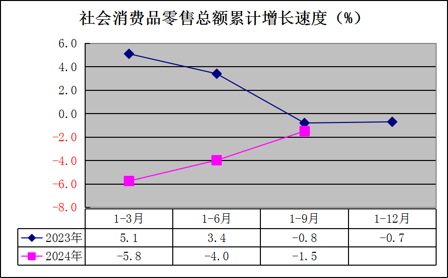 | 五、社会消费品零售总额 | 亿元 | —— | -1.5 |