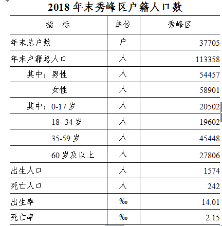 年末全区户籍总人口11.34万人,其中男性5.45万人,比上年增长1.8%;女性5.89万人,比上年增长1.9%。