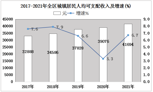 全年辖区居民人均可支配收入41694元,比上年增长6.7%,城镇居民人均可支配收入41694元,比上年增长6.7%。其中,工资性收入21472元,增长7.0%;经营净收入3732元,增长9.5%;财产净收入3190元,增长3.3%;转移净收入13300元,增长6.4%。