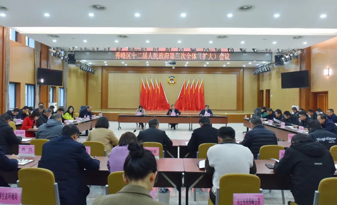 1月12日,秀峰区在机关二楼礼堂召开十二届人民政府第三次全体(扩大)会议,讨论并原则通过即将提请区人大十二届四次会议审议的《政府工作报告(送审稿)》,部署安排近期重点工作,区长刘丰华出席会议并讲话;副区长陆军、凤彬出席会议,区领导陈昭、安明元、陆峰、吴明忠列席会议。