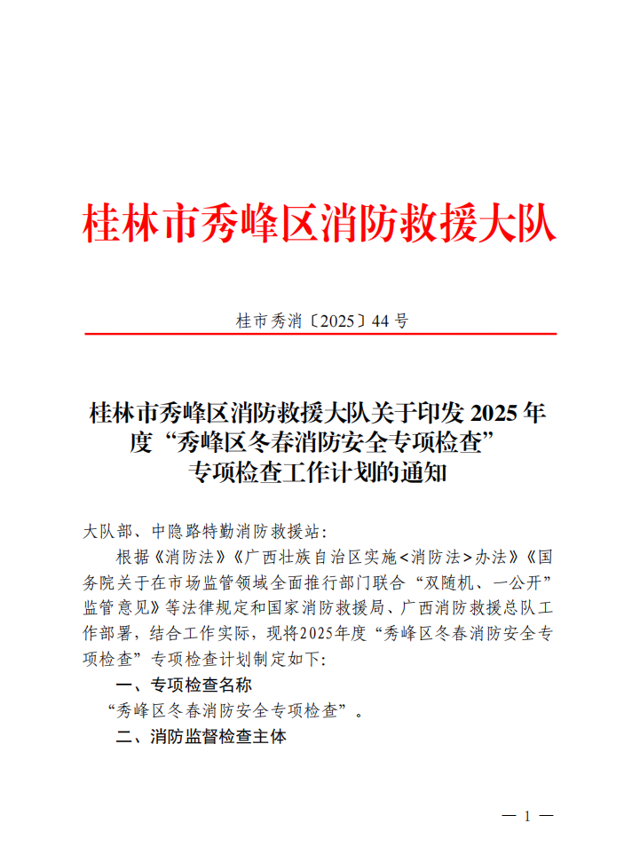 桂林市秀峰区消防救援大队关于印发2025年度“秀峰区冬春消防安全专项检查”专项检查工作计划的通知.pdf