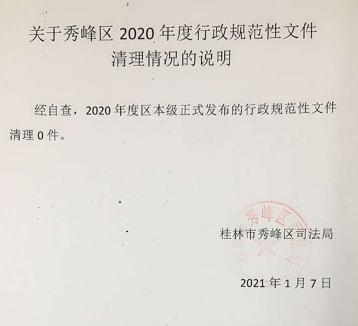 关于秀峰区2020年度行政规范性文件清理