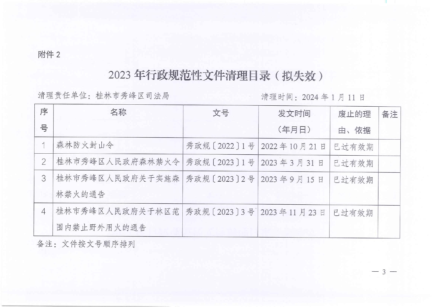 桂林市秀峰区司法局关于公布2023年行政规范性文件清理结果的通知
