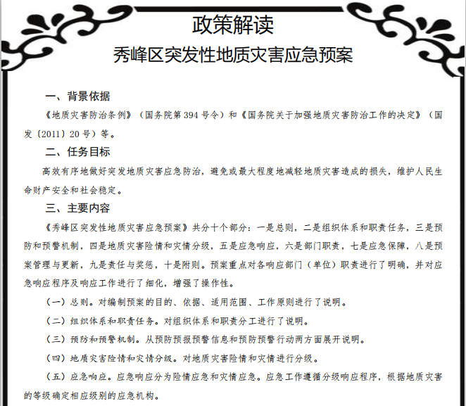 相关文件:桂林市秀峰区人民政府办公室关于印发秀峰区突发性地质灾害应急预案的通知秀政办〔2022〕2号