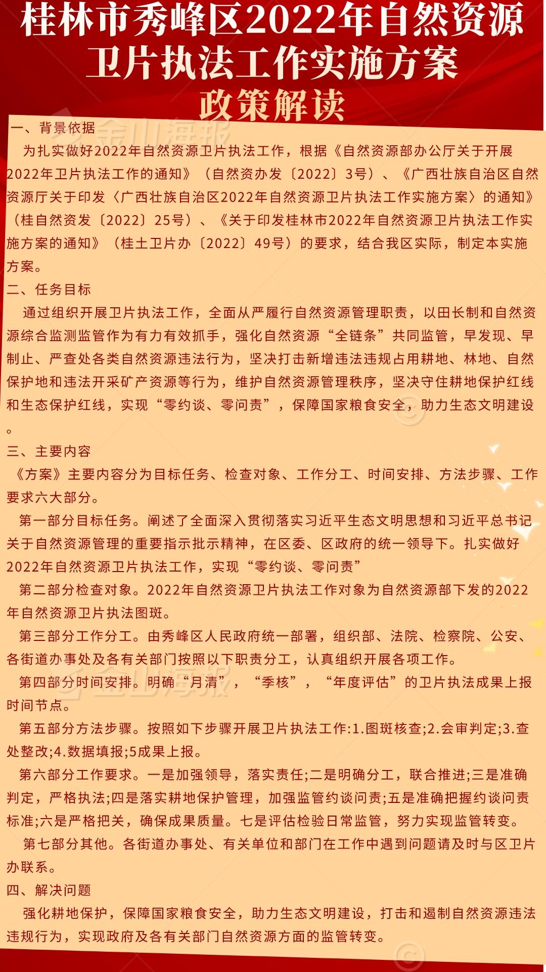 相关文件:桂林市秀峰区人民政府办公室关于印发桂林市秀峰区2022年自然资源卫片执法工作实施方案的通知秀政办〔2022〕5号