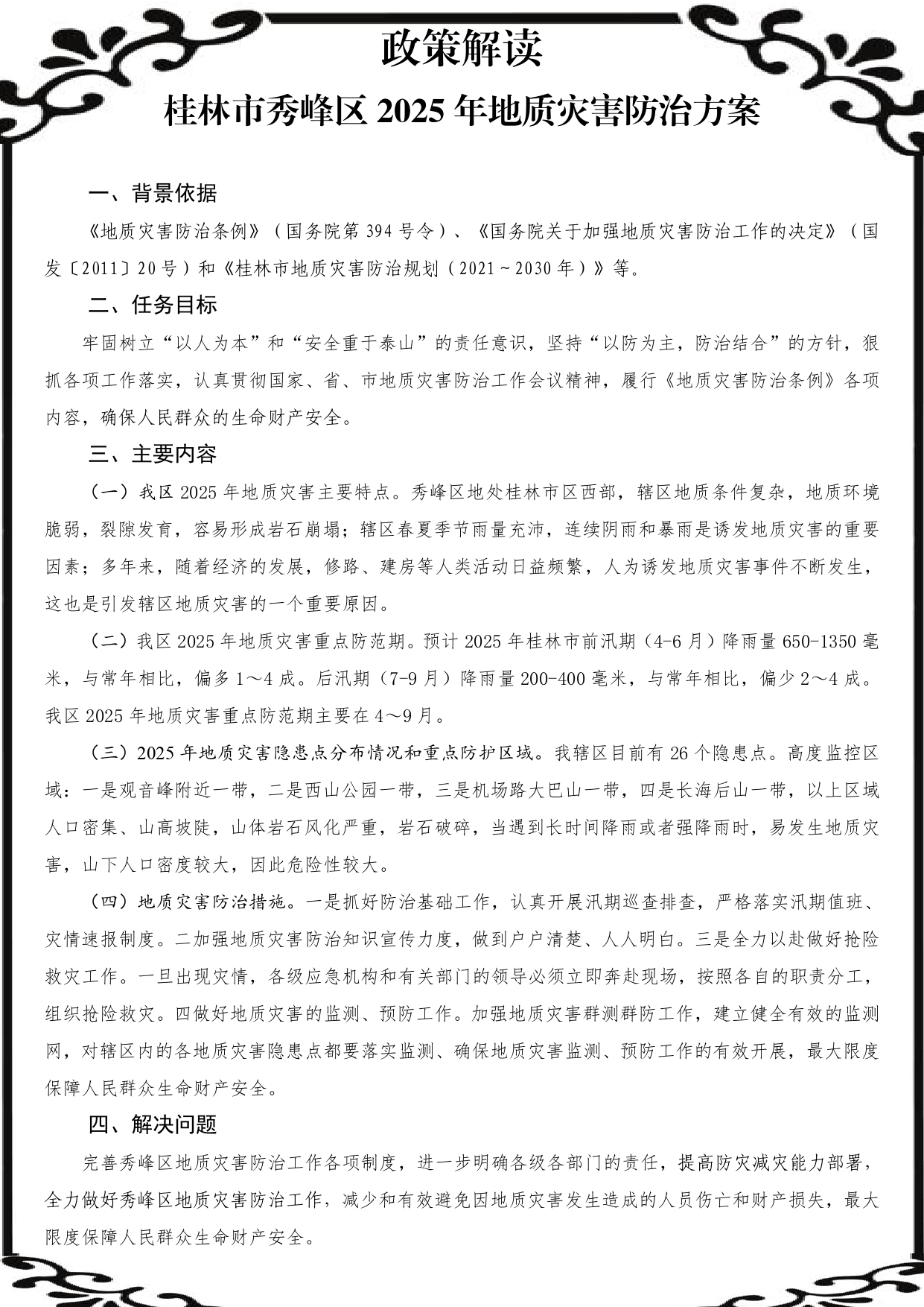 【图文解读】《桂林市秀峰区2025年地质灾害防治方案》政策解读