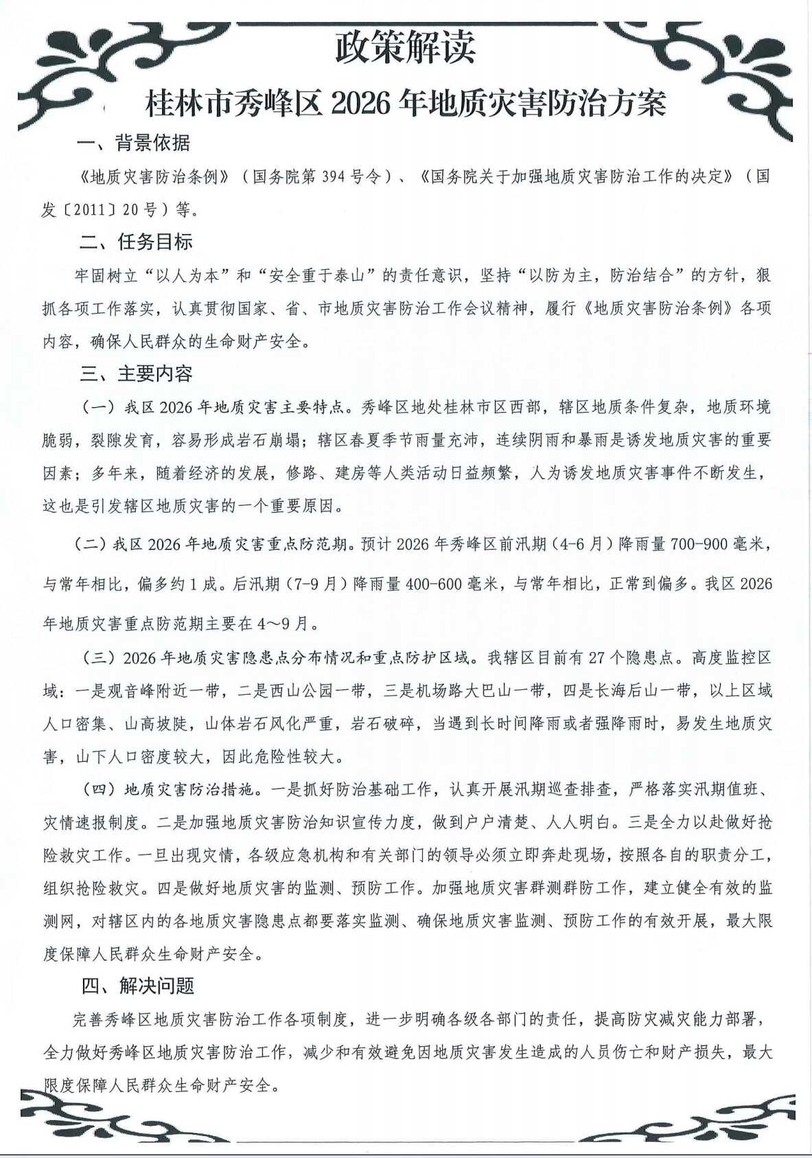 【图文解读】《桂林市秀峰区2026年地质灾害防治方案》政策解读