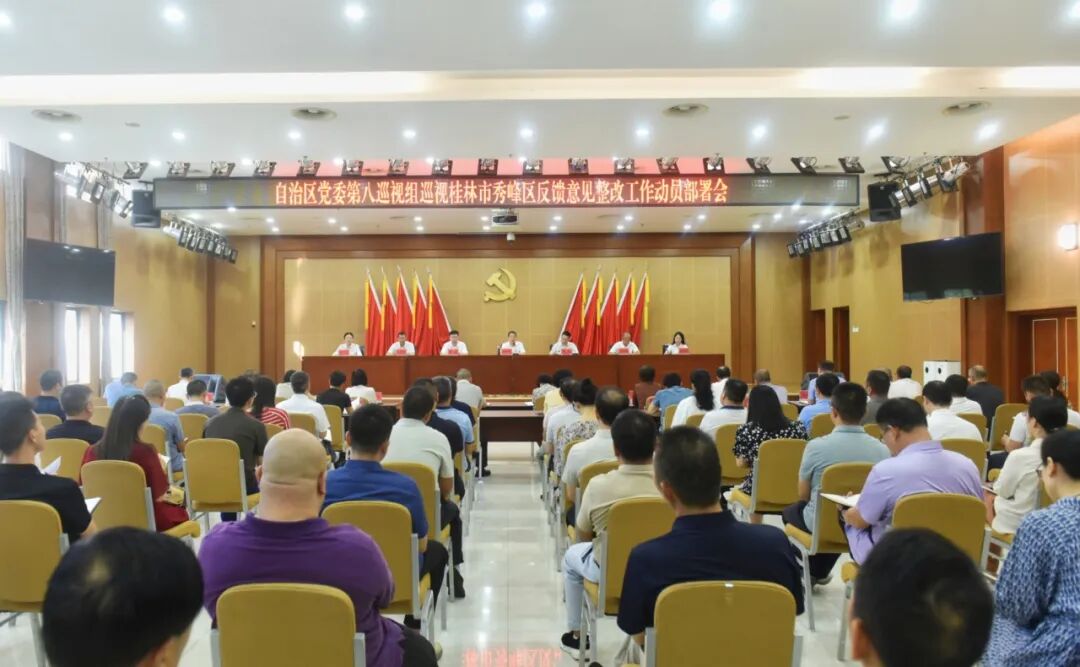 10月16日,自治区党委第八巡视组巡视桂林市秀峰区反馈意见整改工作动员部署会召开,深入学习贯彻习近平总书记关于巡视工作的重要论述,认真贯彻落实习近平总书记关于广西工作论述的重要要求和对桂林的重要指示精神,进一步明确任务、压实责任,动员全区上下以鲜明的政治态度、有力的整改措施、扎实的工作作风,坚决把自治区党委巡视反馈问题整改到位,以高质量整改成效推动高质量发展。区委副书记、区长刘丰华出席会议并讲话,区委副书记周琥主持会议。