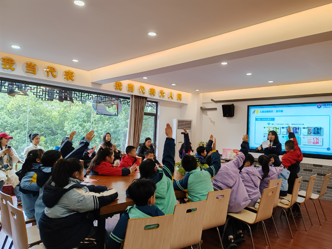 活动伊始,在金融启蒙大课堂上,银行专业老师深入浅出地讲解银行职能、钱币来源与用途,以及劳动的意义,孩子们积极踊跃回答问题,对金融知识展现出了浓厚兴趣。