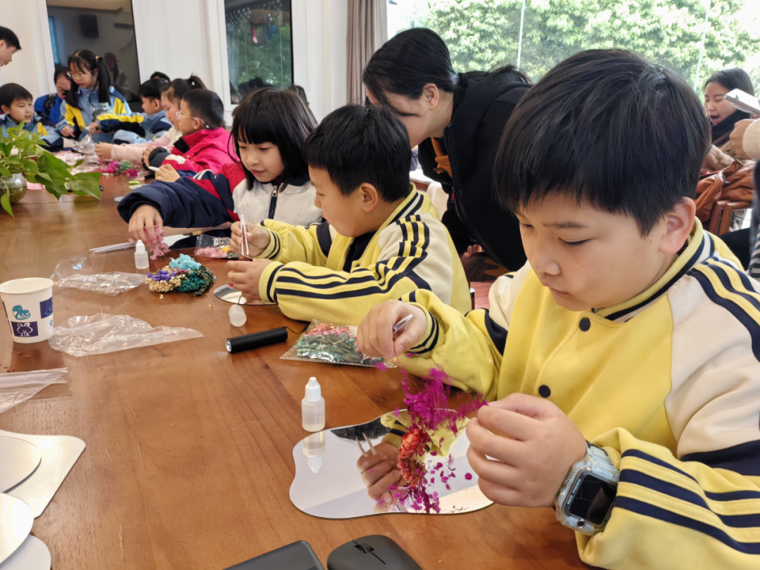 在石矶娘娘“夸夸镜DIY”手工制作环节,孩子们充分发挥想象力,将五颜六色的干花用胶水仔细地粘贴在镜子周围。不一会儿,镜子的边框就变得五彩斑斓了,孩子们捧着自己亲手制作的“夸夸镜”,迫不及待地跑到妈妈身边,把镜子递给妈妈,满脸笑容地说:“妈妈,您是世界上最漂亮的妈妈!我爱您!”现场一片暖意融融。