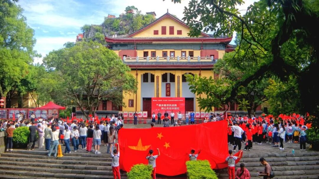 9月26日,桂林市秀峰区“红蕴秀峰·薪火相传”红色研学实践推进会在独秀峰·王城景区举行。活动由秀峰区教育局、文化体育和旅游局联合主办,中华小学承办,独秀峰·王城景区、东华社区协办,共同开展“健步踏寻抗战路 同心共绘中国红”大思政实践活动。