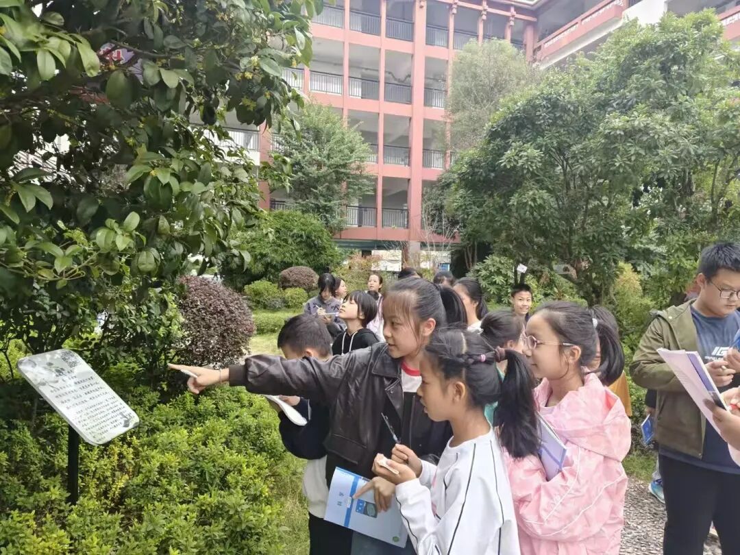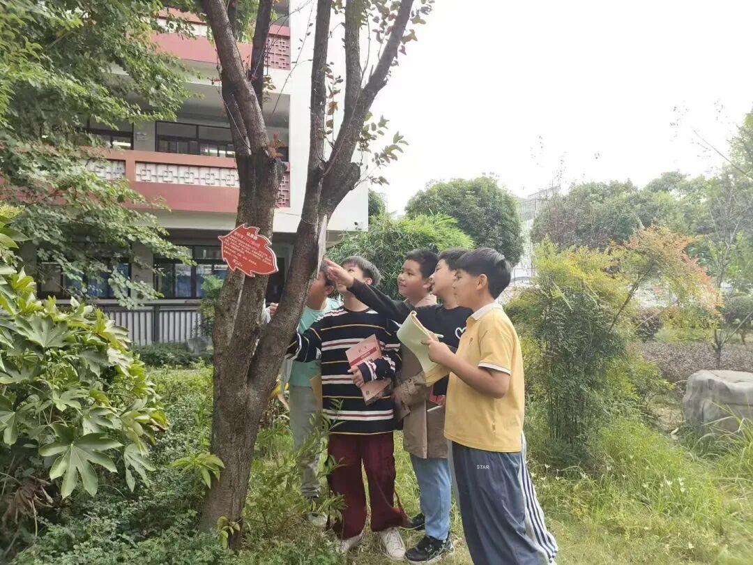 活动中,孩子们化身“小小植物侦探”,穿梭在校园的各个角落,用眼睛观察叶片的纹路、花朵的形态,用小手触摸树皮的质感,沉浸式感受校园植物的生机与魅力。