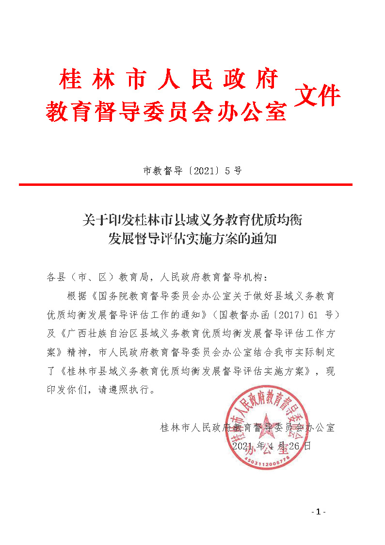 关于印发桂林市县域义务教育优质均衡发展督导评估实施方案的通知