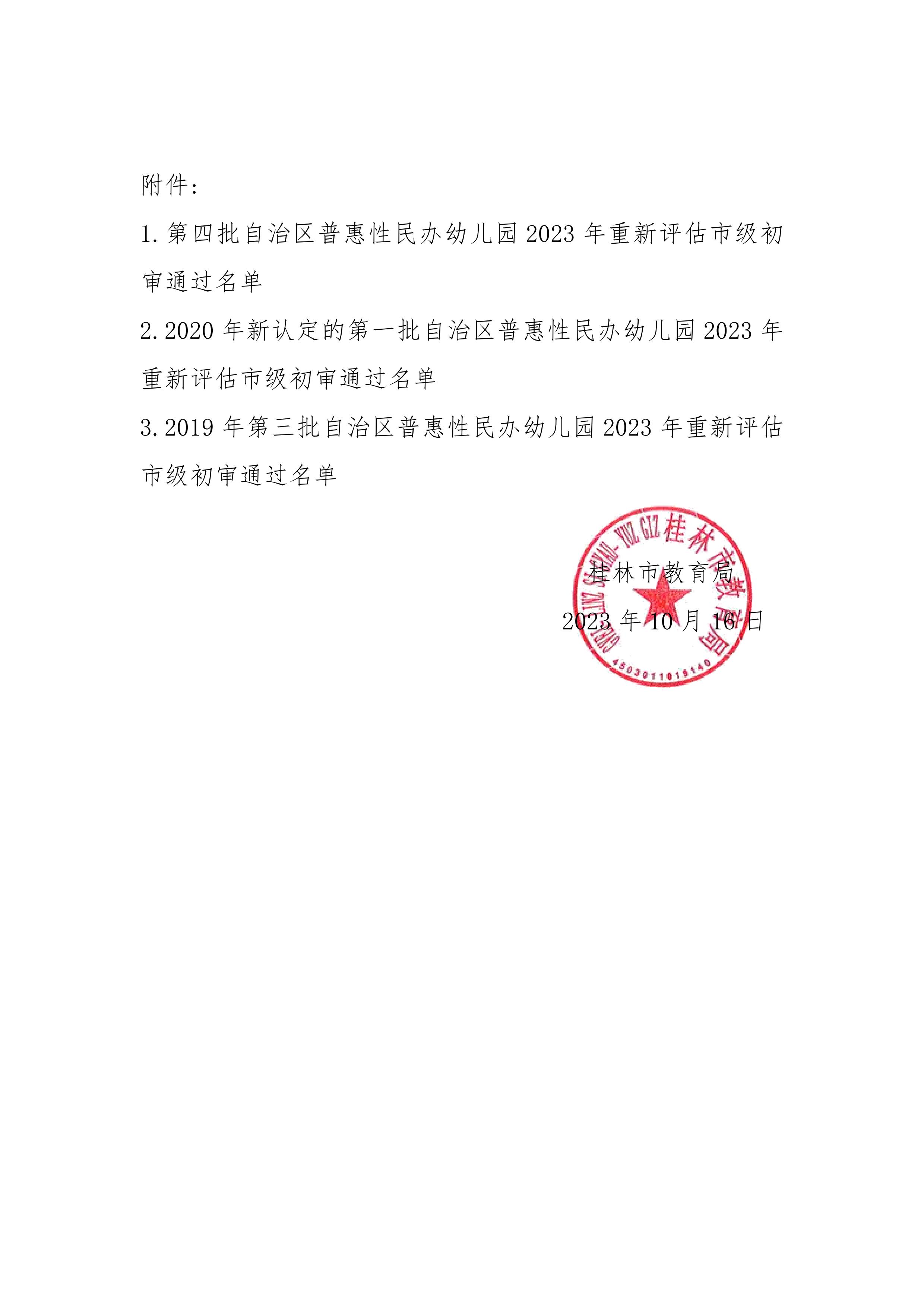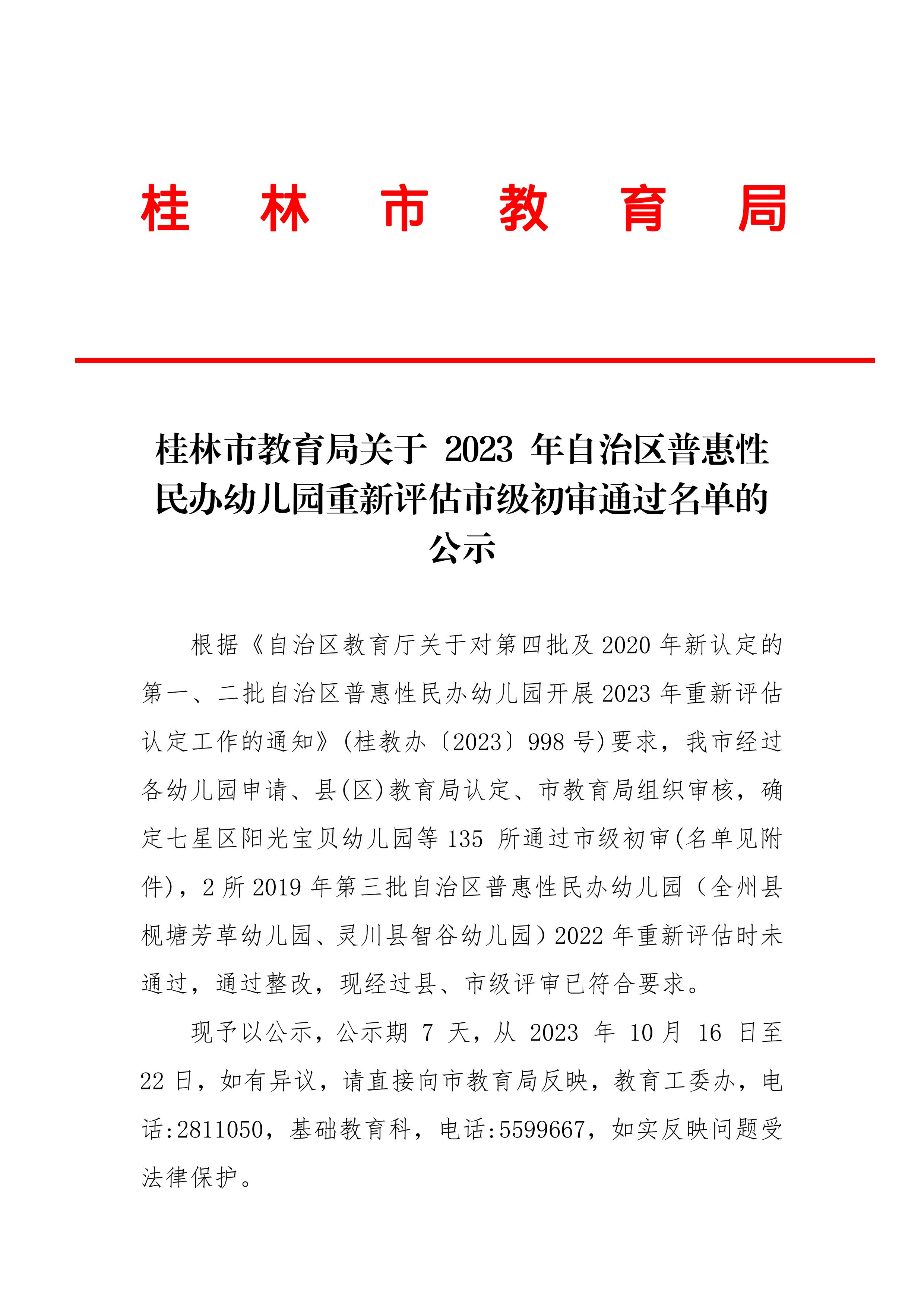 桂林市教育局关于2023年自治区普惠性民办幼儿园重新评估市级初审通过名单的公示