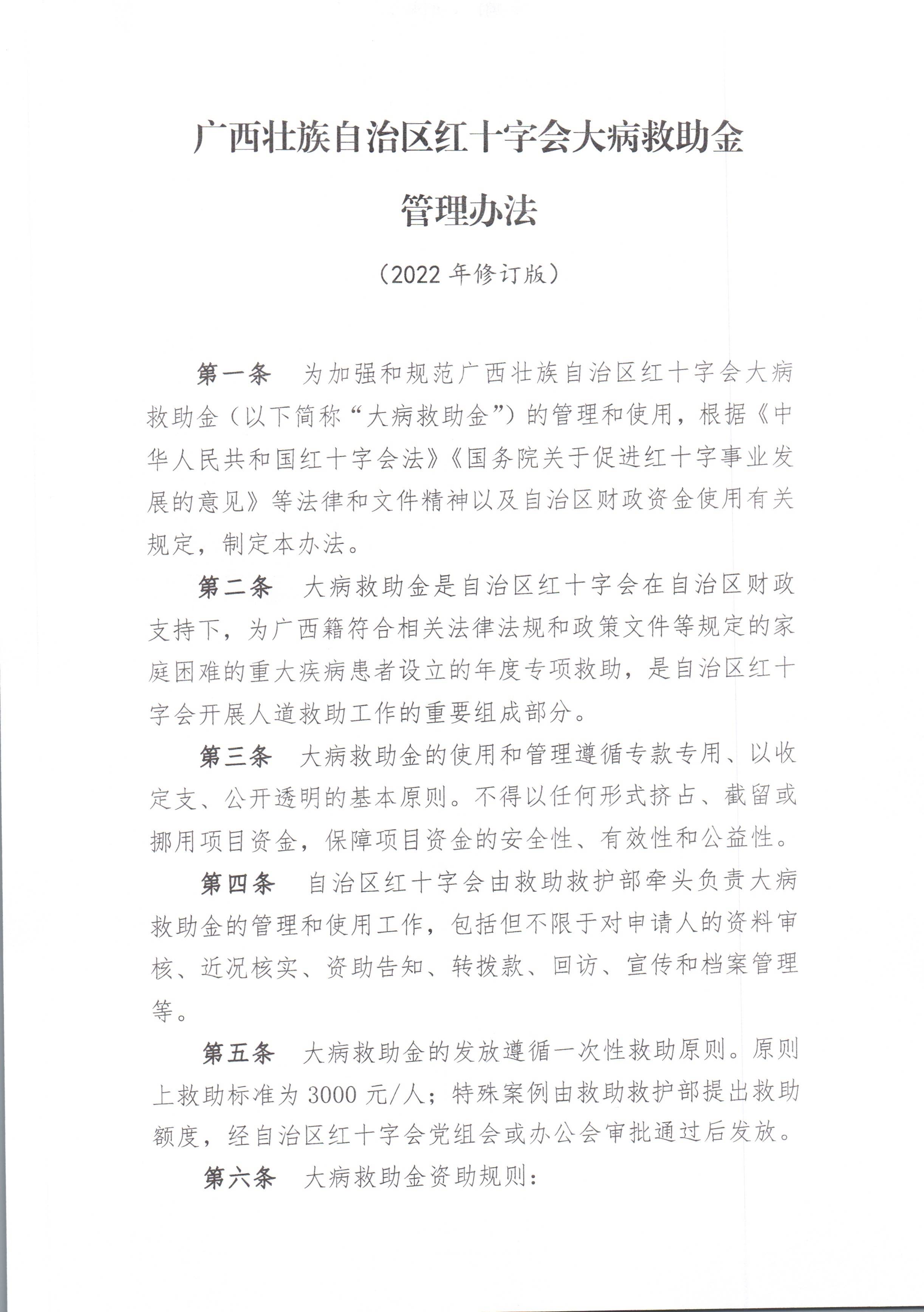 转发广西壮族自治区红十字会《大病救助金管理办法》