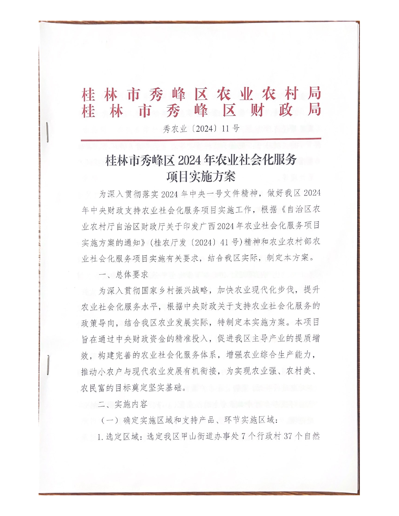 桂林市秀峰区2024年农业社会化服务项目实施方案