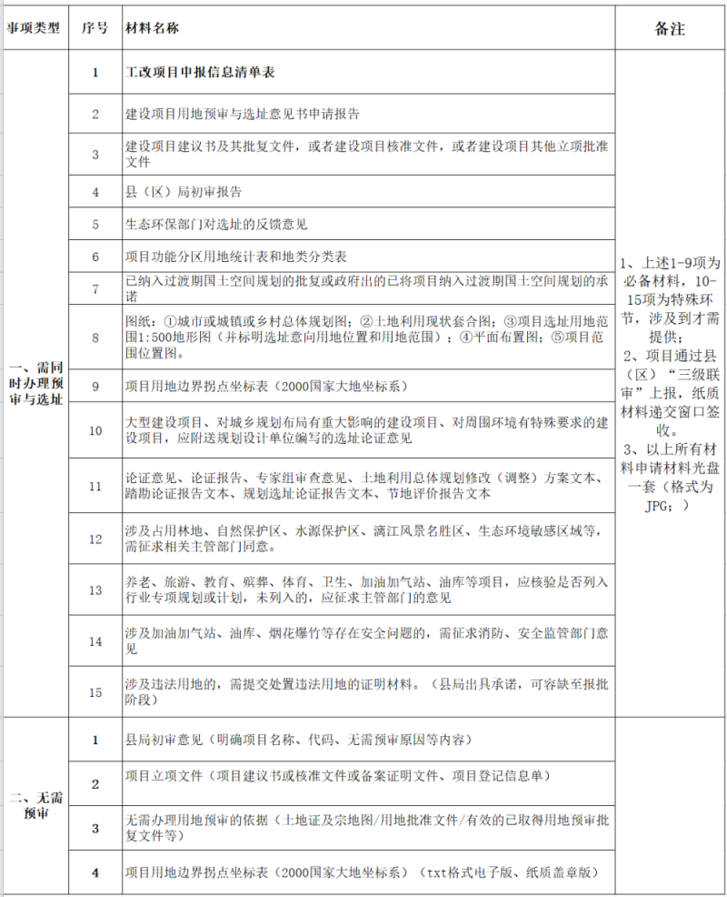 建设项目用地预审与选址意见书收件清单(各县报市级)