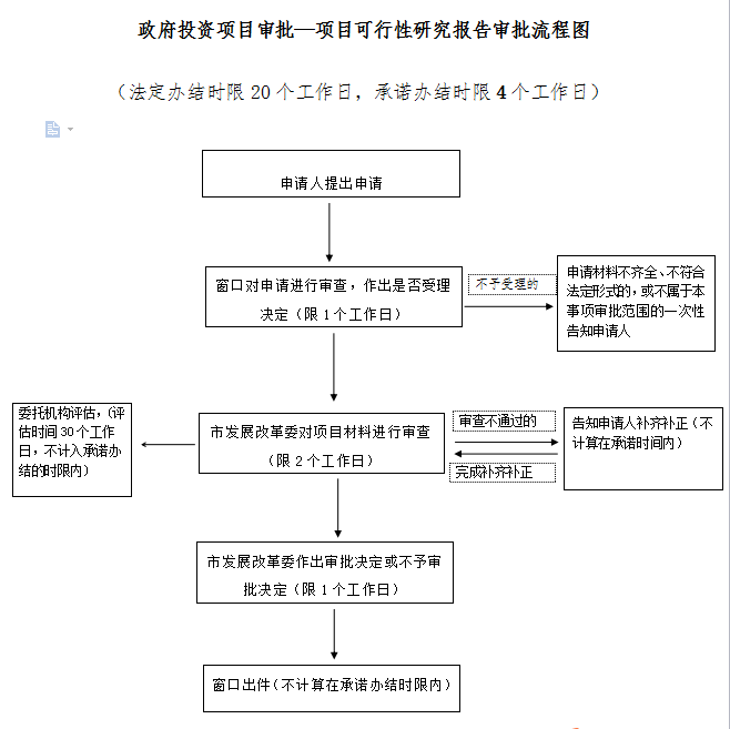 1.项目可行性研究报告审批的申请文件 2.项目建议书批复文件(符合简化审批情形无需批复项目建议书的项目需提供依据文件) 3.项目可行性研究报告文本 4.项目可行性研究报告评估意见 5.项目用地预审和规划选址意见书 6.项目资金来源落实证明材料 7.项目社会稳定风险评估报告及评估意见(符合可以不做项目社会稳定风险评估条件的项目除外) |