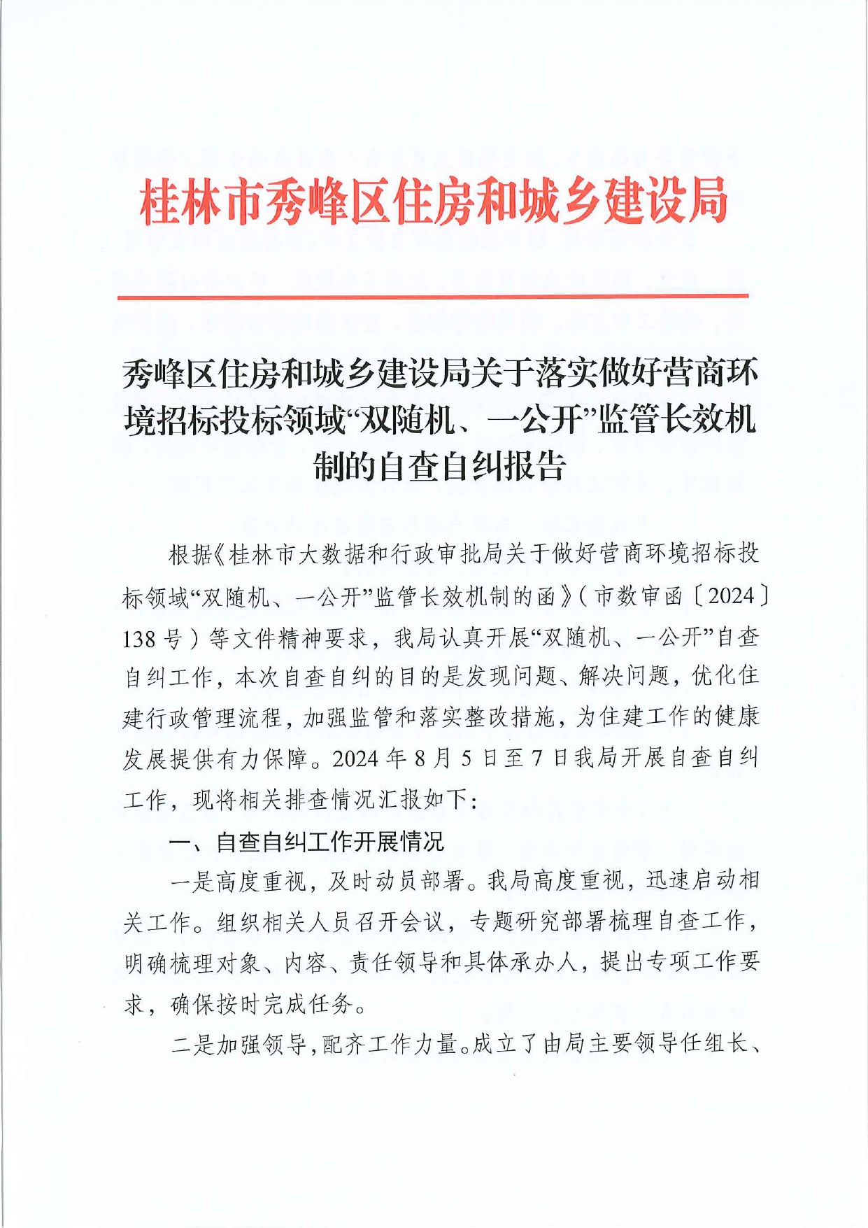 1-3-1-秀峰区住房和城乡建设局关于落实做好营商环境招标投标领域“双随机、一公开”监管长效机制的自查自纠报告.pdf