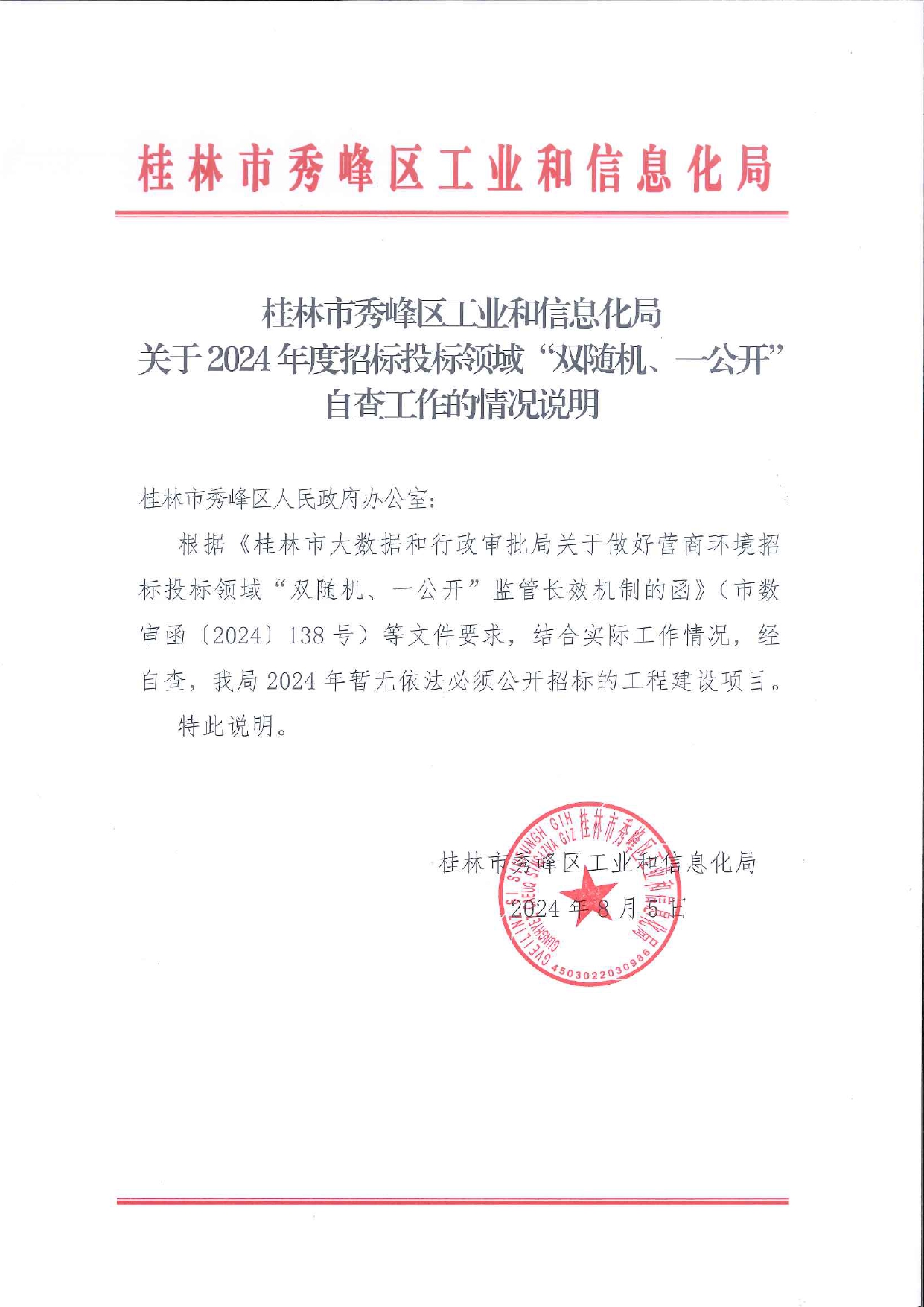 桂林市秀峰区工业和信息化局关于做好营商环境招标投标领域双随机一公开监管长效机制的情况说明