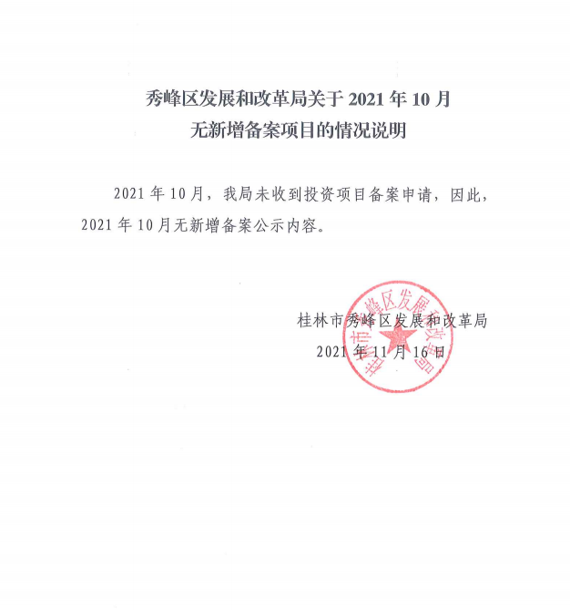 秀峰区发展和改革局关于2021年10月无新增备案项目的情况说明