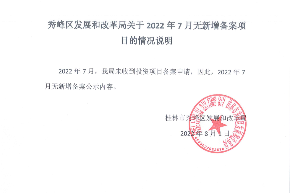 秀峰区发展和改革局关于2022年7月无新增备案项目的情况说明