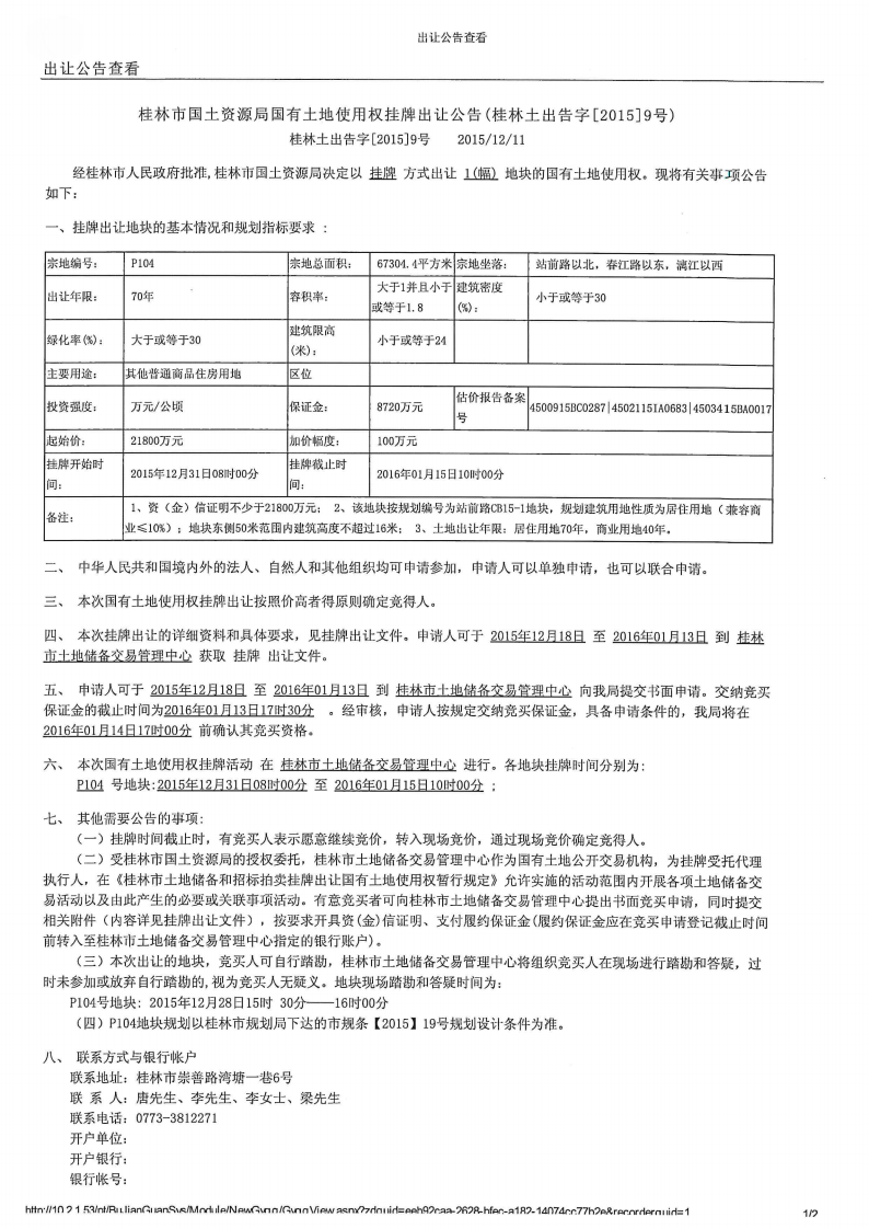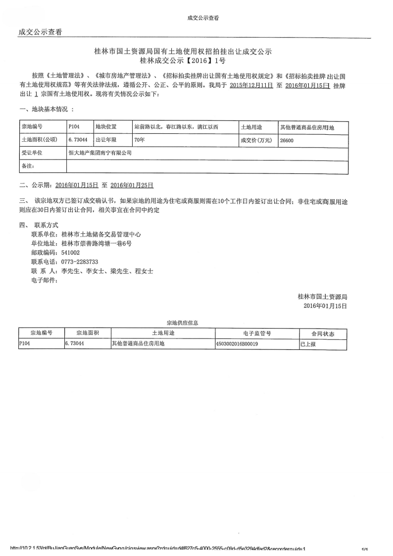 恒大江湾项目出让公告和成交公示