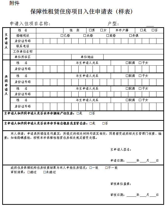 附件:保障性租赁住房项目入住申请表(样表)