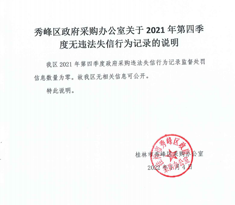 秀峰区政府采购办公室关于2021年第四季度无违法失信行为记录的说明
