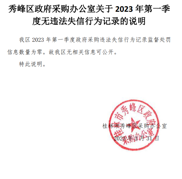 秀峰区政府采购办公室关于2023年第一季度无违法失信行为记录的说明