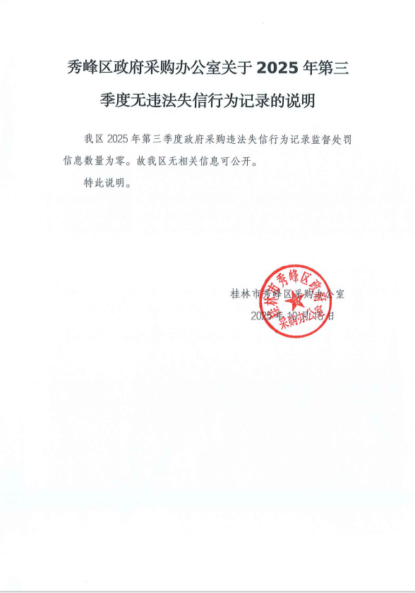 秀峰区政府采购办公室关于2025年第三季度无违法失信行为记录的说明