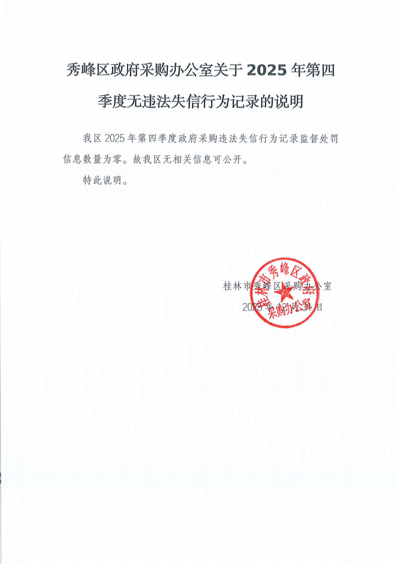 秀峰区政府采购办公室关于2025年第四季度无违法失信行为记录的说明