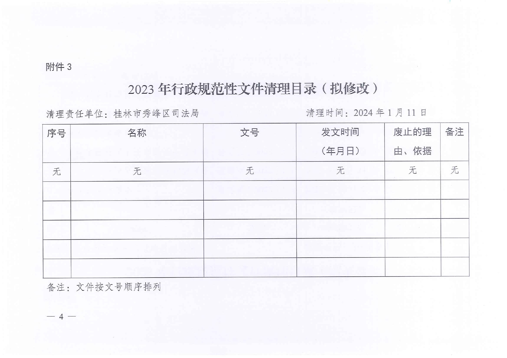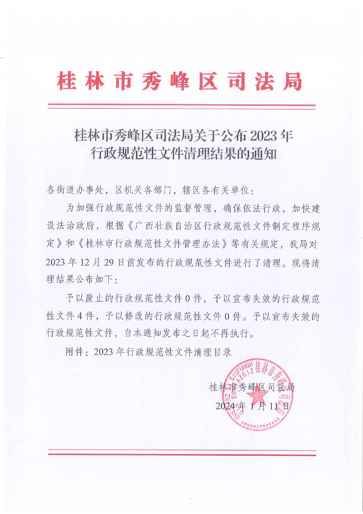 桂林市秀峰区司法局关于公布2023年行政规范性文件清理结果的通知