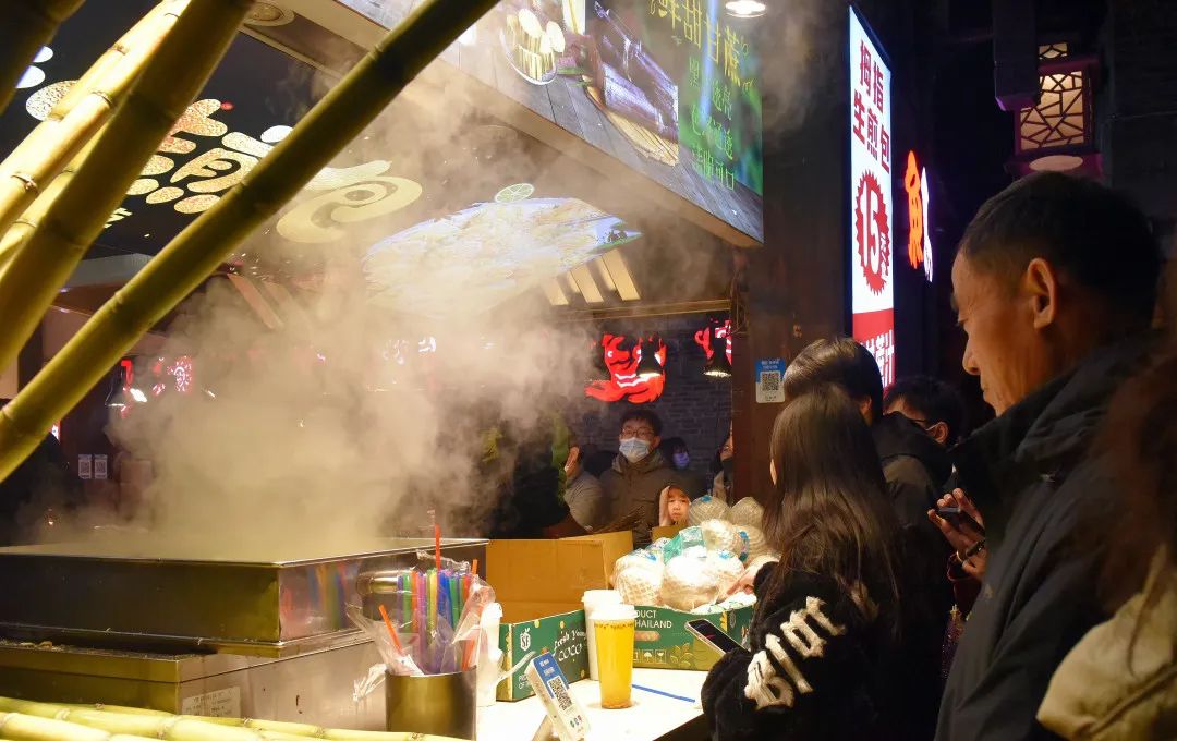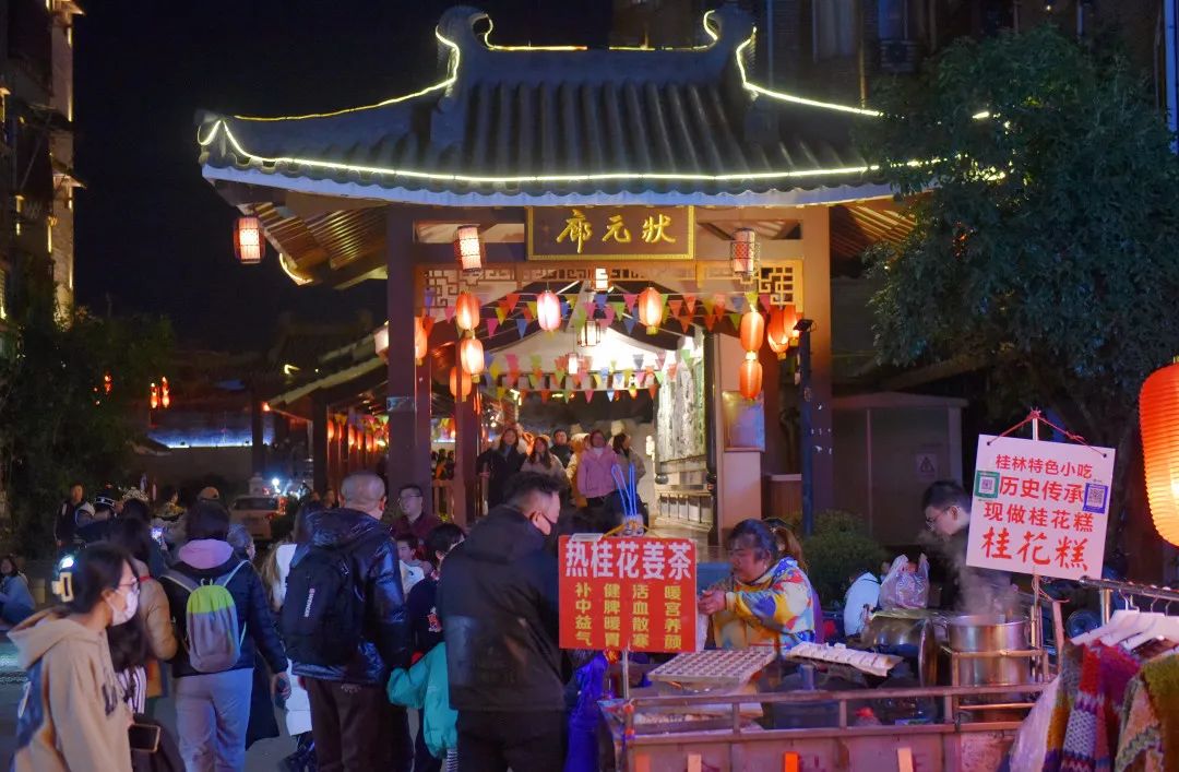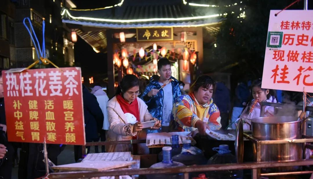 廖女士是一位长期在东西巷状元廊一带卖桂林传统小吃桂花糕的老板,“年前每天只能卖出几十个,现在一晚上可以卖一两千个!过年嘛,游客多,这边小吃也比较多,生意很不错的。”