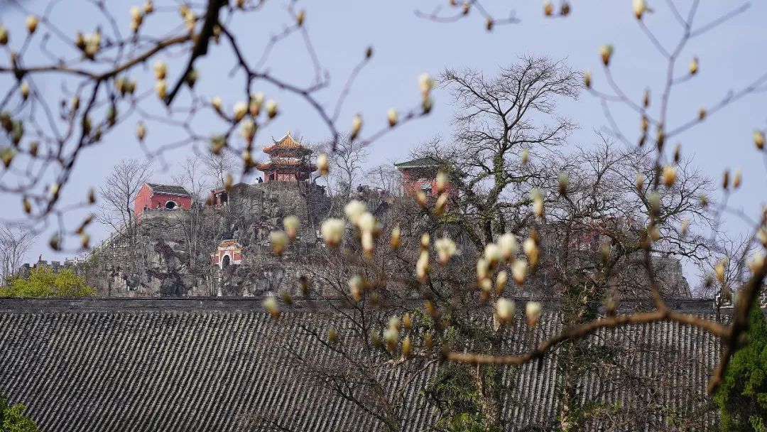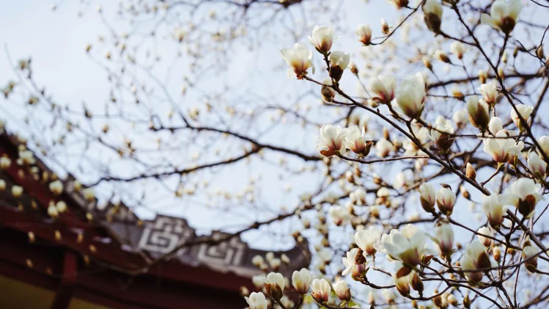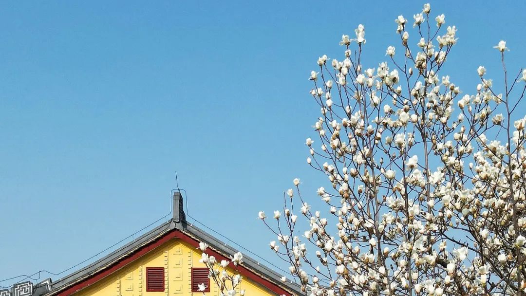 春日的靖江王府,玉兰花开,满树洁白如雪,与古老的王府建筑相映成趣,仿佛一幅动人的画卷。