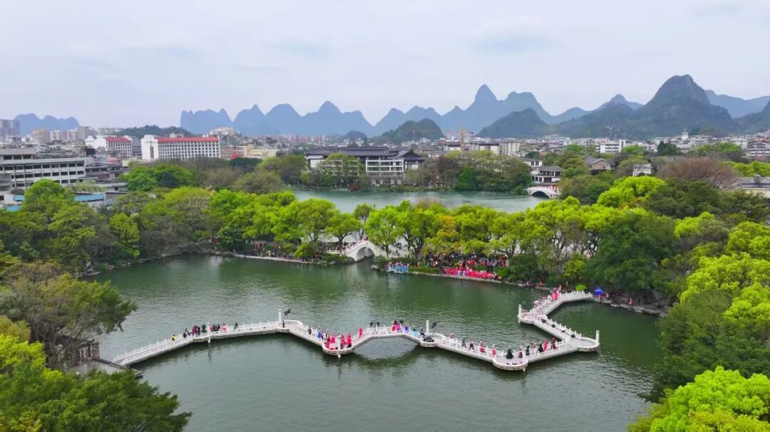 在桂花公社,游客可制作桂花糕、手绘壮锦团扇,完成体验即可兑换限定文创。壮乡集市汇聚油茶、五色糯米饭等特色美食,搭配织锦、绣球等非遗手作展销。星空玻璃屋前开设春日露营会,提供桂花主题下午茶及伴手礼折扣。特别设置的儿童共创画展,让亲子家庭共同绘制民族风情画卷,让游客在五百年桂花王树下系福许愿,将桂林山水的美好记忆带回家。
